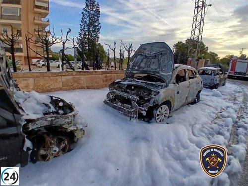 Cuatro arrestados tras incendiar diez vehículos en Son Servera, causando pérdidas de 150.000 euros.